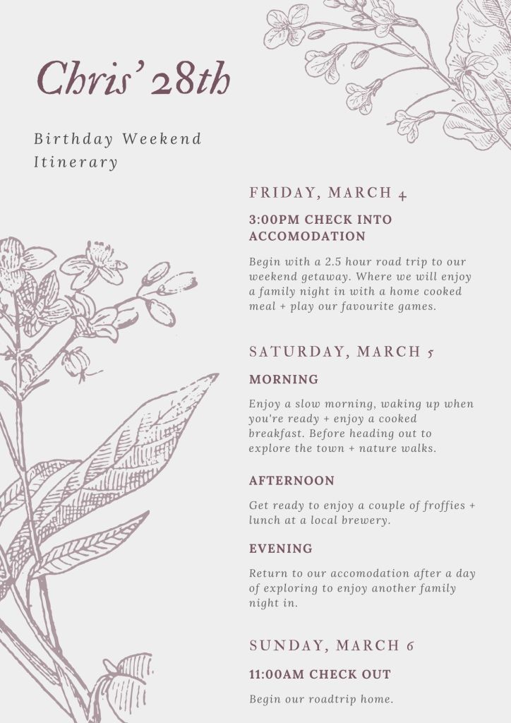 So when his birthday rolled around in early March I organised a little trip away with a full itinerary to cover the weekend!