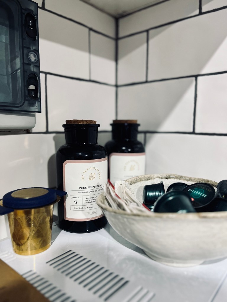 Louisa has gone above and beyond with the little details throughout the studio from the handwritten welcome note accompanied by some goodies including a bottle of McGuigan alcohol-free bubbles, and gorgeous tea options from The Tea Collective. The only thing that would have made it better, was if there were some Grace + Marie products dotted around the space. 😉